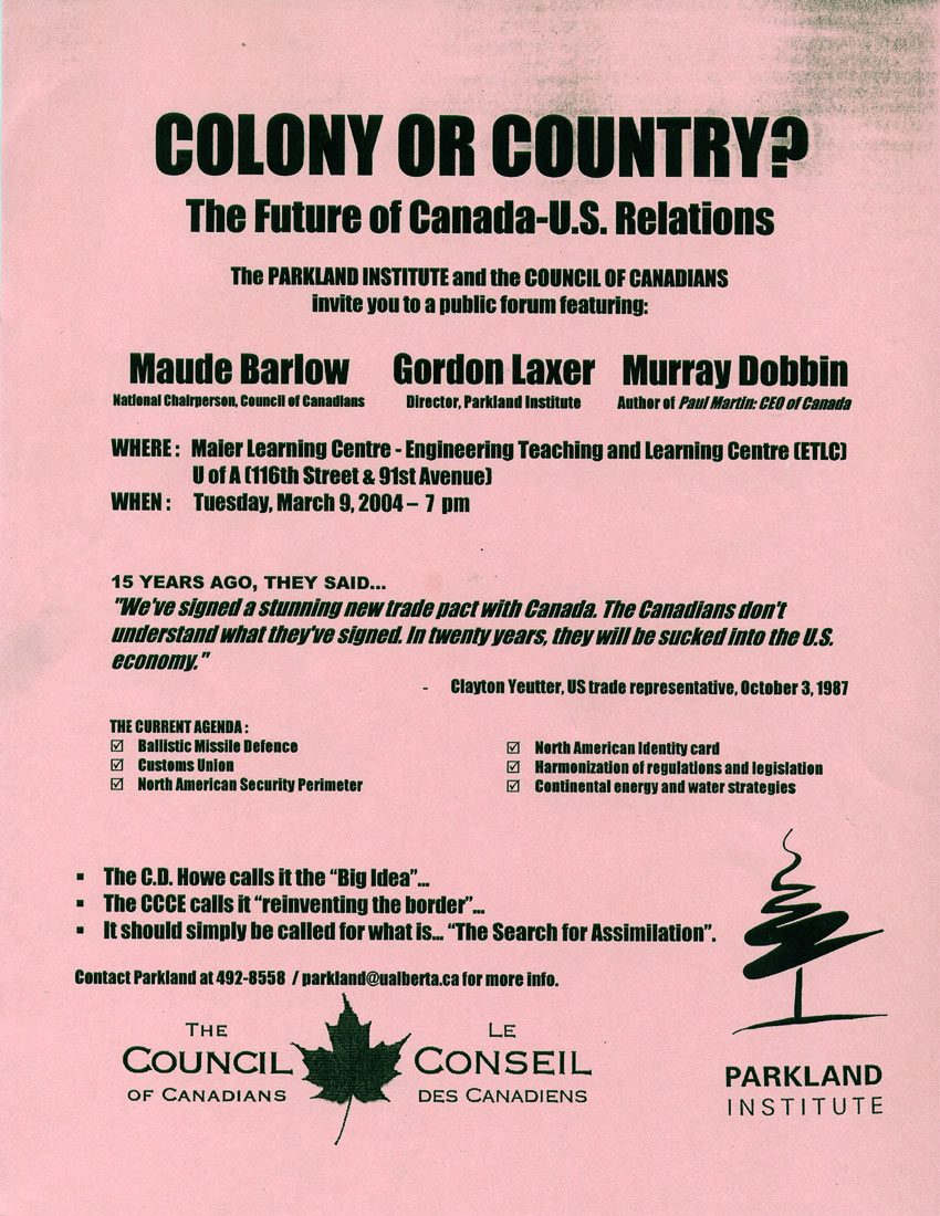 Notes:Co-Sponsored by Council of Canadians.